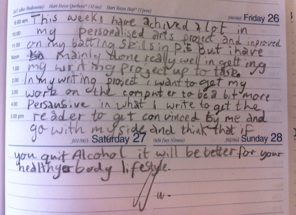 Their learning diaries are accessible in the classroom whenever they need them to set goals or reflect.